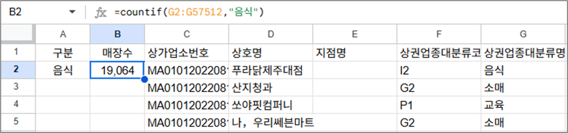 구글 스프레드시트 COUNTIF 함수 총정리