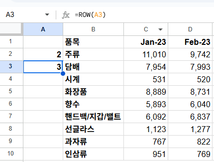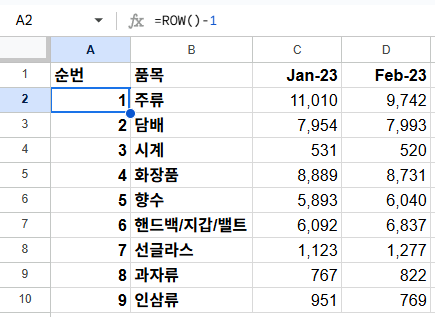 구글 스프레드시트 ROW 함수 완벽 정리_행 번호 자동 입력