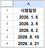 문제) 가장 빠른 시험일정은?
