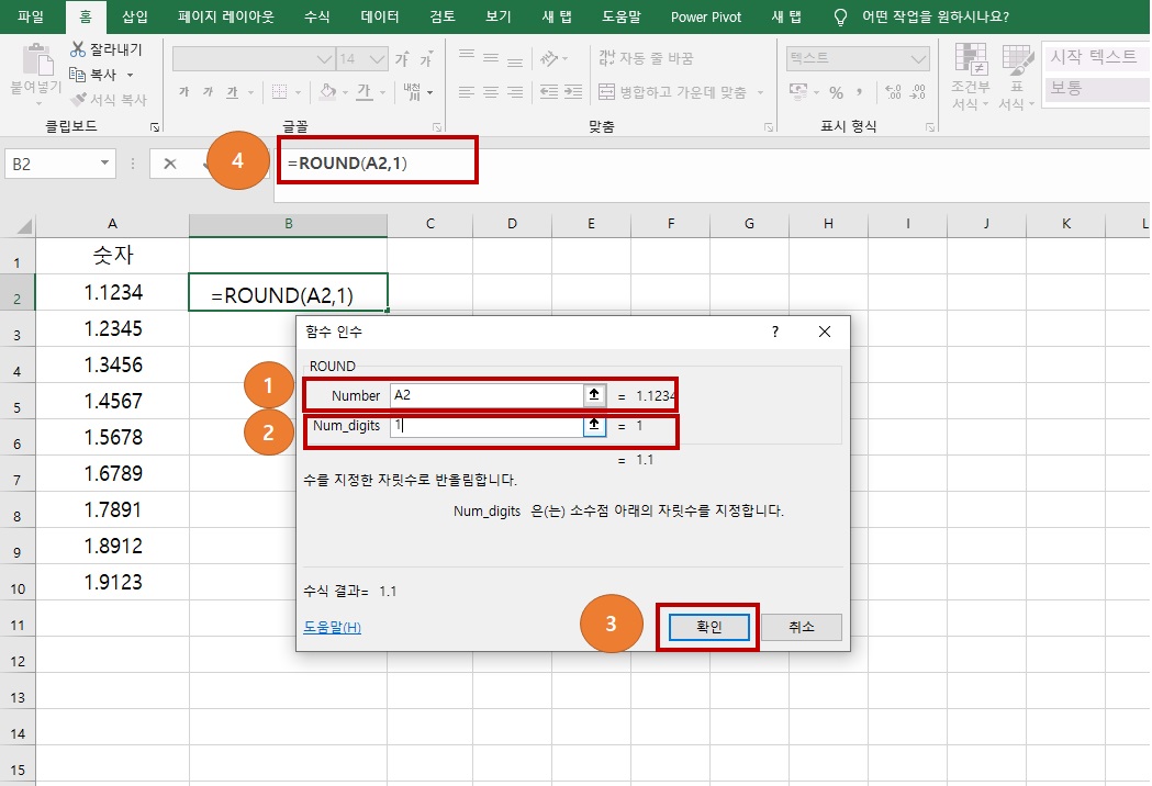 4번에 ROUND함수가 익숙해지시면 바로 입력하여 함수를 활용하셔도 됩니다.