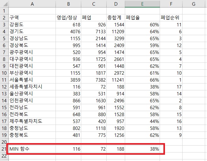 3. MIN 함수를 통해서 최대값 찾기는 완료되었습니다.