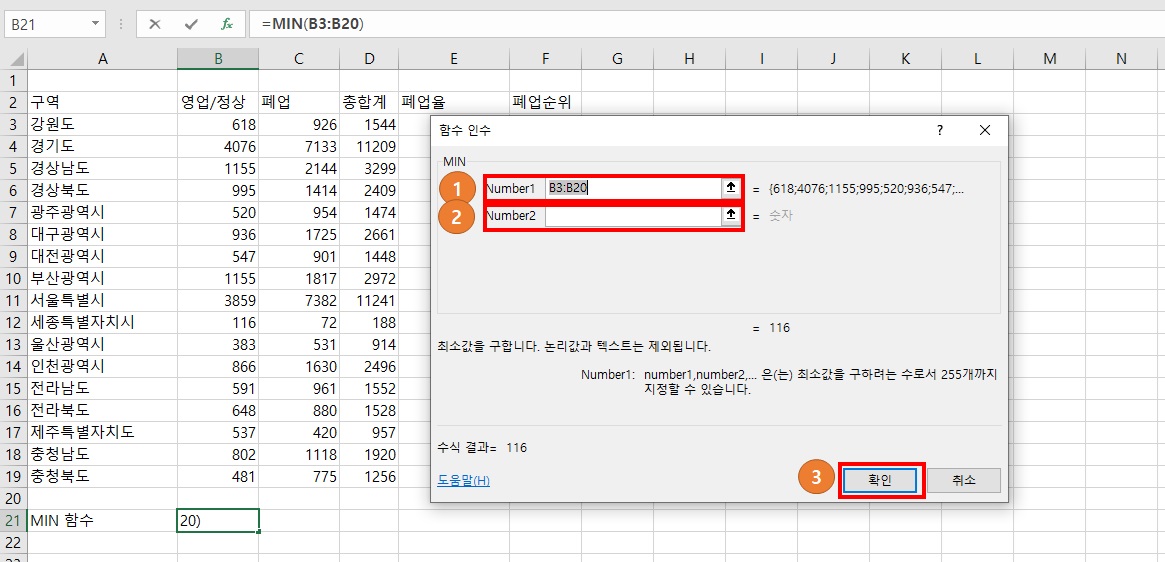 3번 : MIN 선택 후 확인 클릭