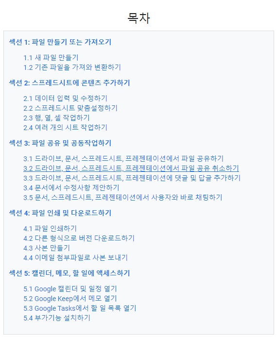 그래서 구글에서 구글 스프레드시트 교육 자료를 공개하고 있습니다