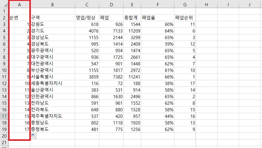 5. 마지막으로 삽입한 A열을 삭제하면 됩니다.