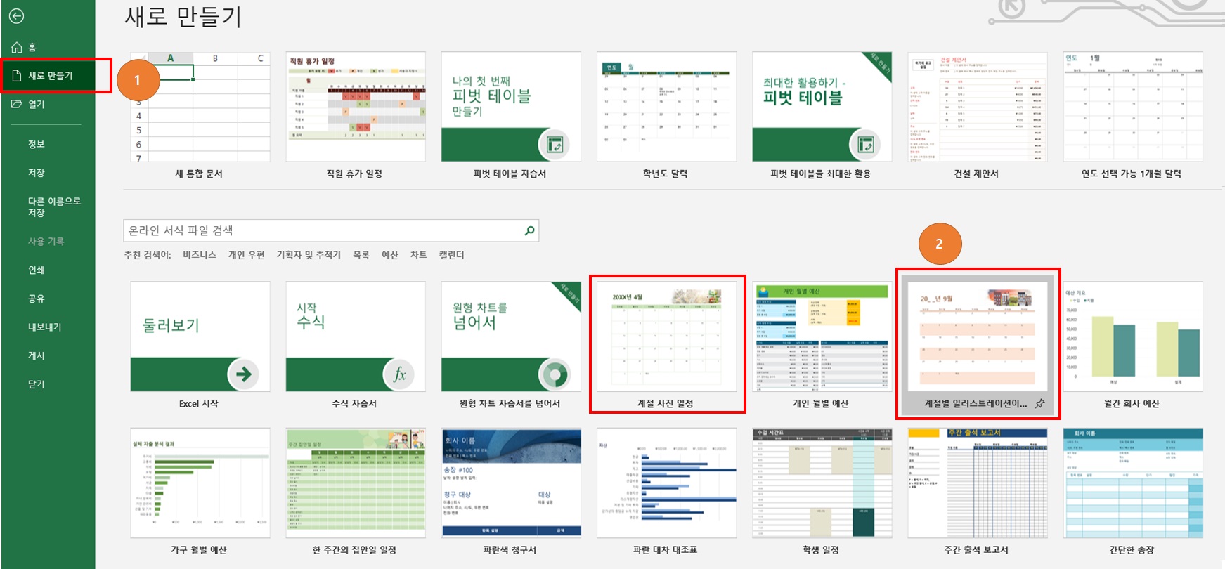 마이크로소프트사에서 제공하는 무료 엑셀 달력 양식을 사용해보겠습니다.