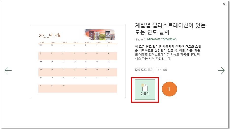 마이크로소프트사에서 제공하는 무료 엑셀 달력 양식을 사용해보겠습니다.