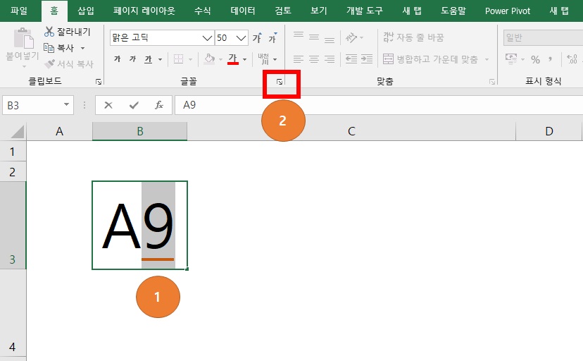 2번 : 화살표를 클릭해서 셀 서식을 불러옴