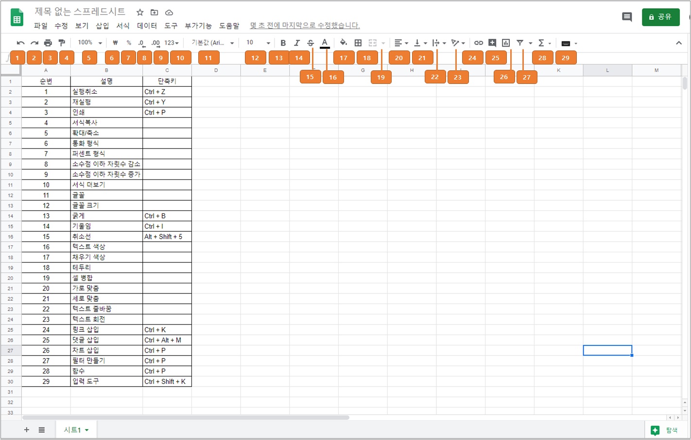 구글 스프레드시트 화면 구성(구글엑셀 화면 구성)
