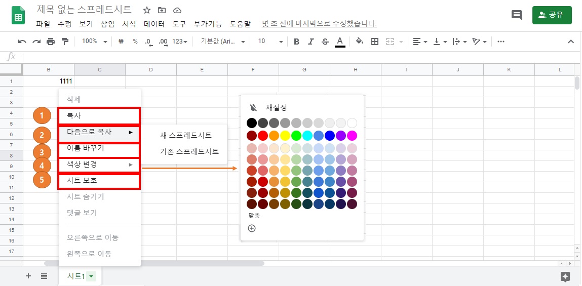 구글 스프레드시트 시트 색상 변경