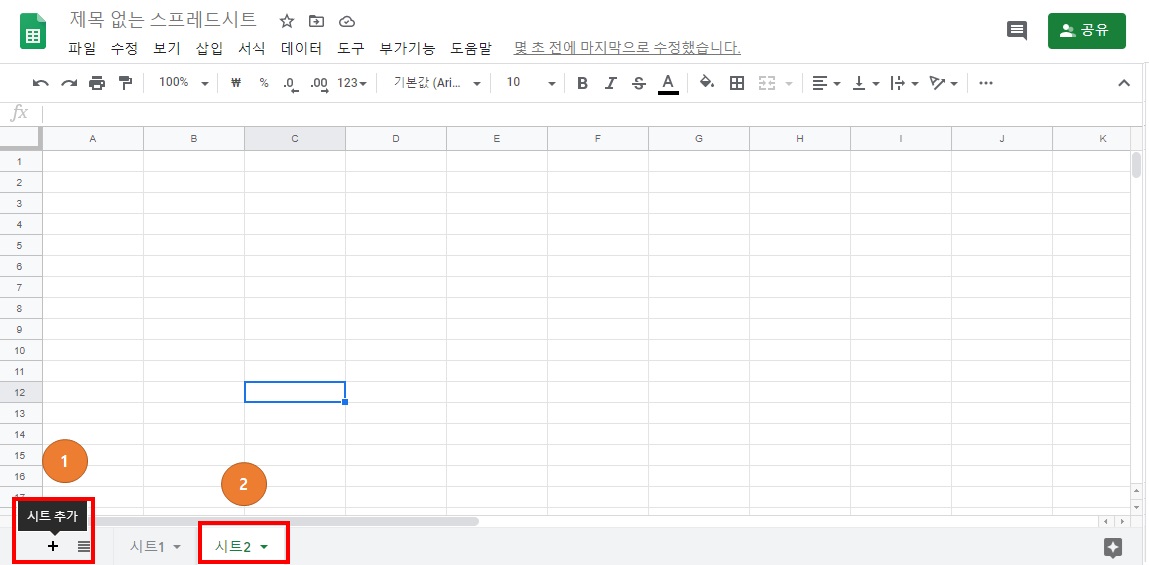 1번 + 덧셈 모양을 클릭하면 시트가 바로 추가됩니다.