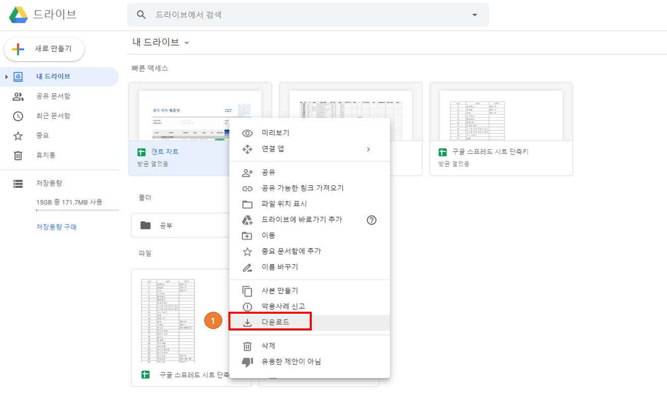 구글 스프레드시트 다운로드(엑셀로 변환)