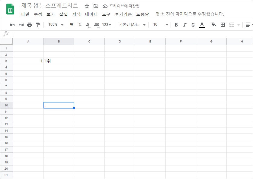 구글 스프레드시트에서 채우기를 해보겠습니다.