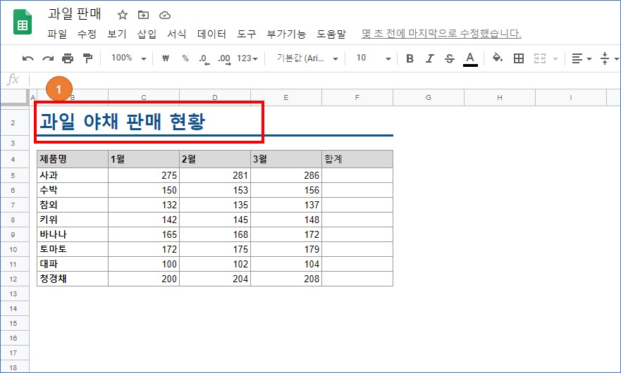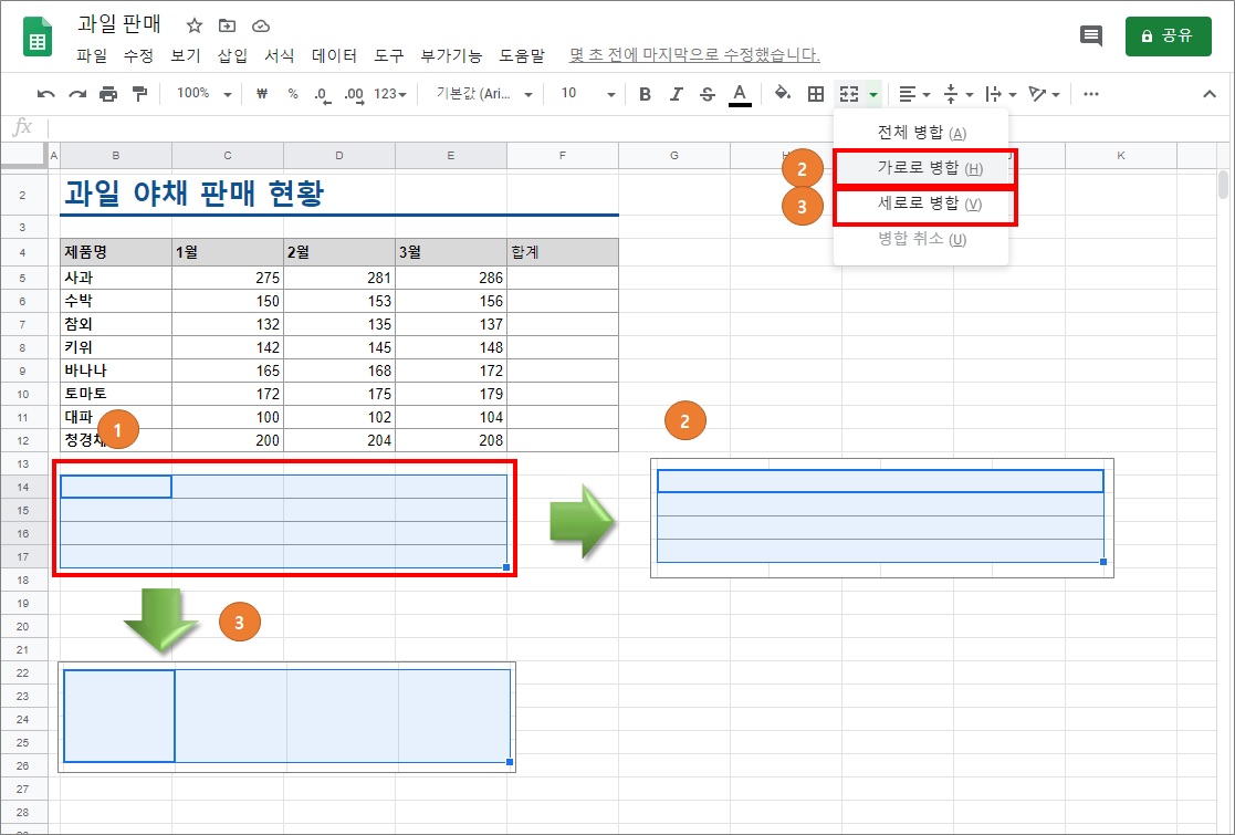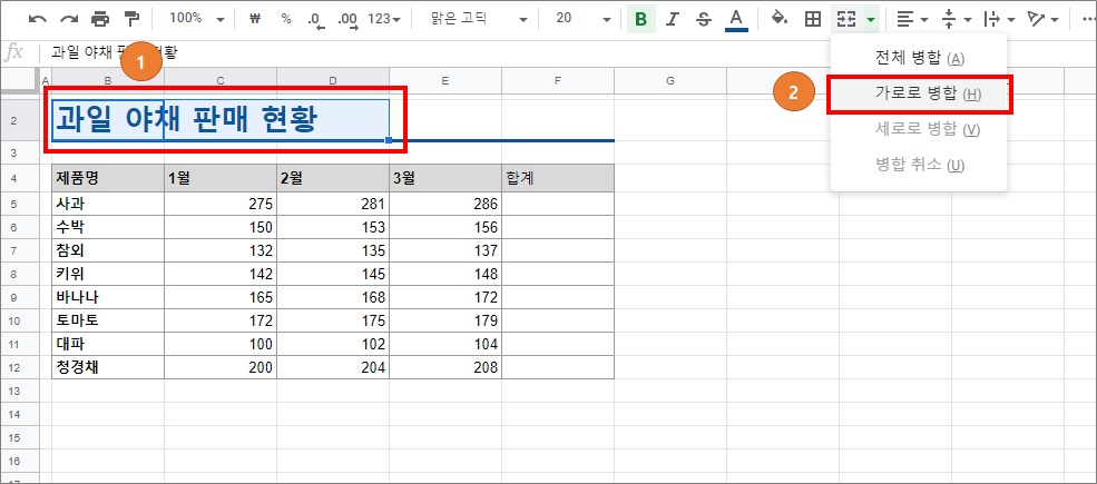 구글 스프레드시트 셀 병합하기를 따라 해보세요