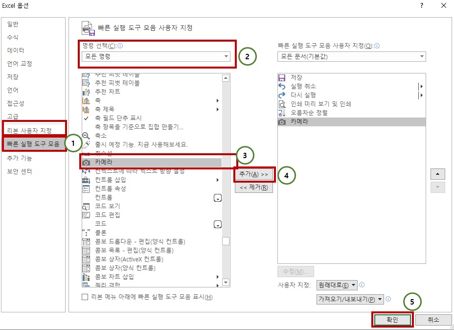 1. 빠른 실행도구 모음에 카메라 기능 넣기