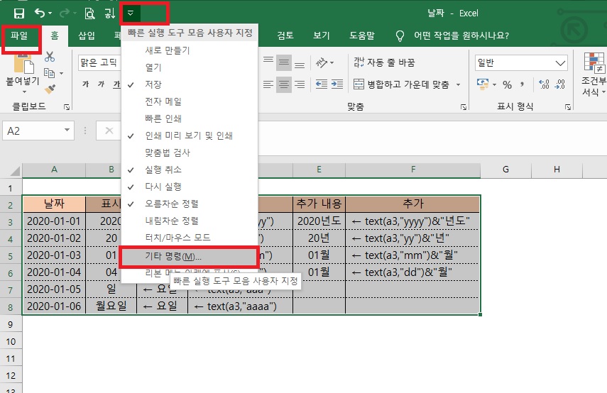 아래표시로 되어있는 모양을 크릭하고 기타 명령 클릭